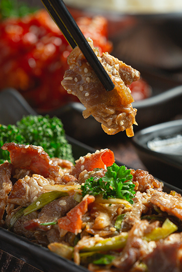 One of the most important things that make us so unique is the way the meat is prepared. High-quality beef, pork, or chicken is first cut into small, tender pieces. We marinate the meat using a variety of ingredients to give the dish a unique flavor or simply slice it into bite-sized fatty chunks